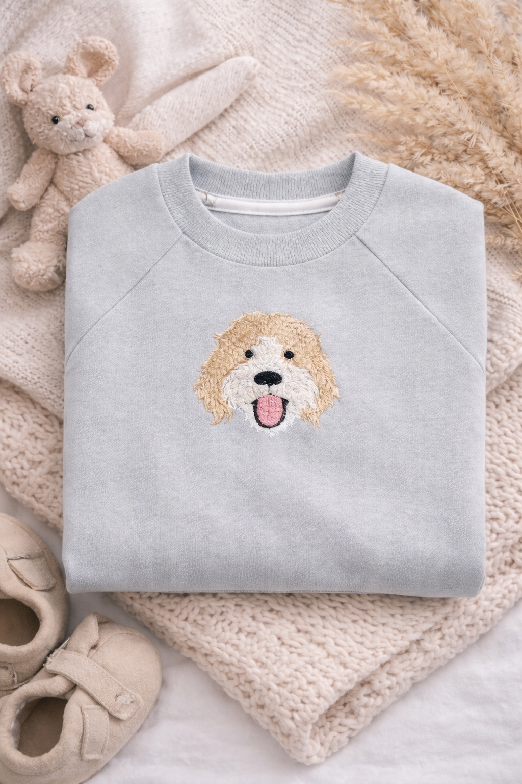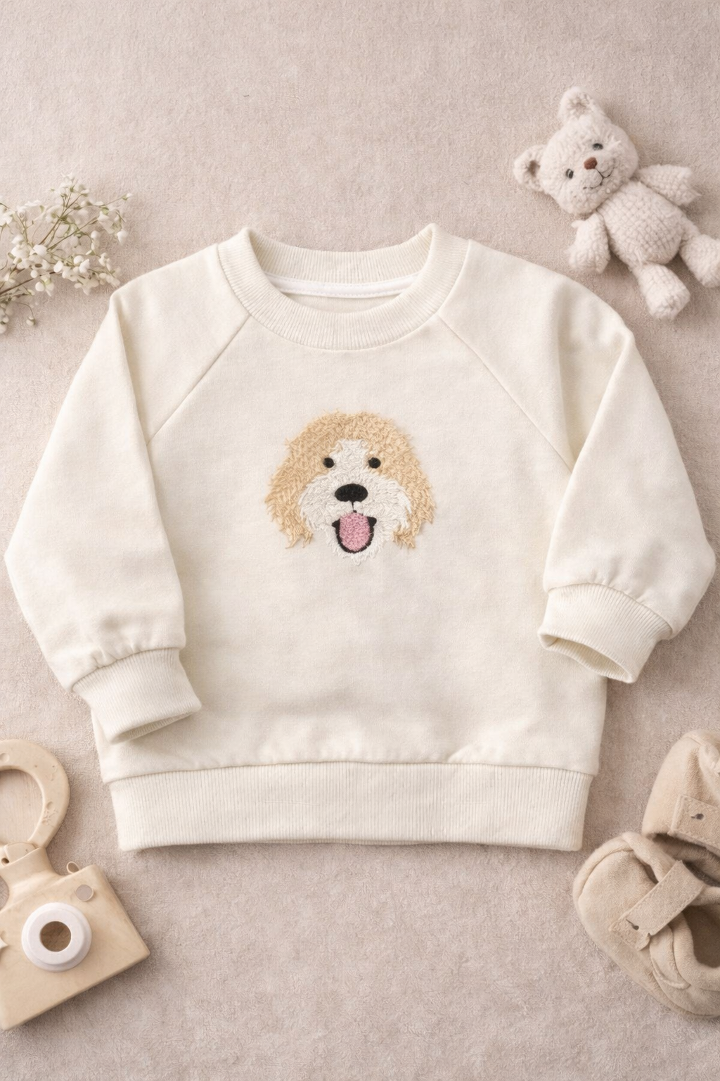 Looking for a unique personalised baby gift for a Cockapoo lover? Our custom embroidered Cockapoo baby sweatshirt is designed to celebrate the special bond between little ones and their beloved pup — creating a beautiful keepsake they’ll treasure forever.
